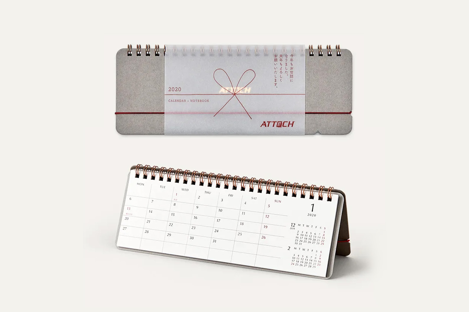 テレワークなど“新しい働き方”にぴったりな『プラススタンドカレンダー』はノートとカレンダー2つの顔を合わせ持ちます。ゴムバンドを表紙の切り込みに引っかけるだけで簡単に立てることができ、持ち運びにも便利です。