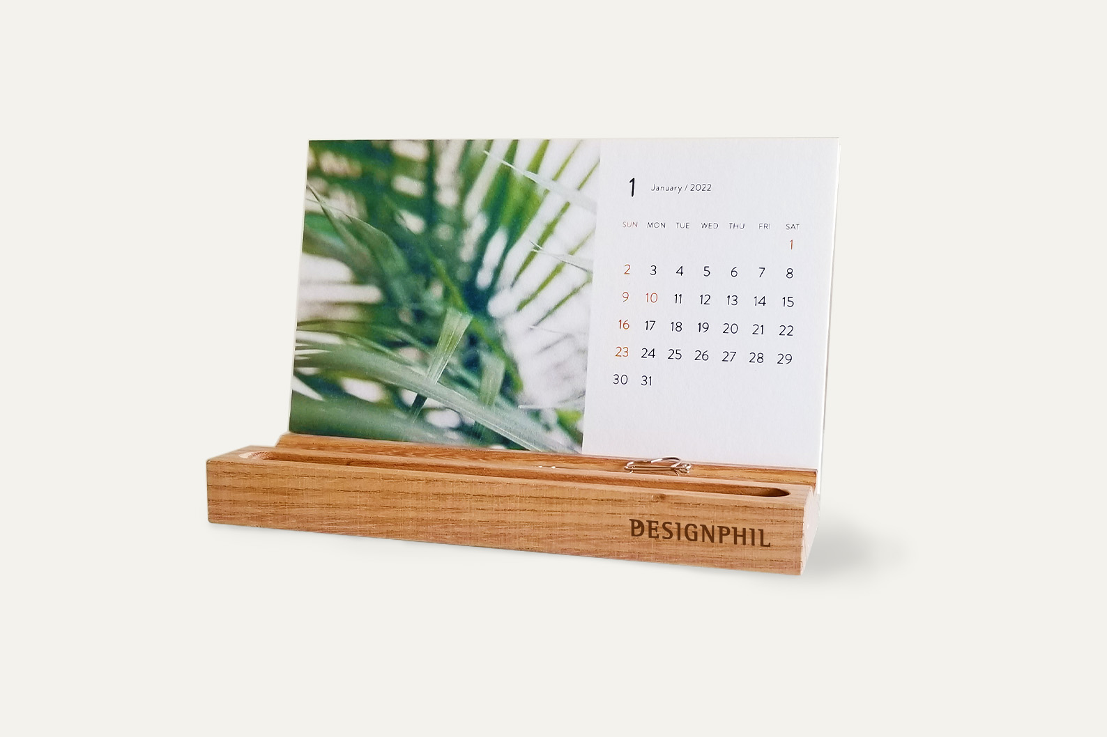 古紙を配合した再生紙のカードカレンダーと、間伐材などを使用した木製台座がセットになっています。環境に配慮したエコ製品として、SDGsなどの企業アピールにも最適です。