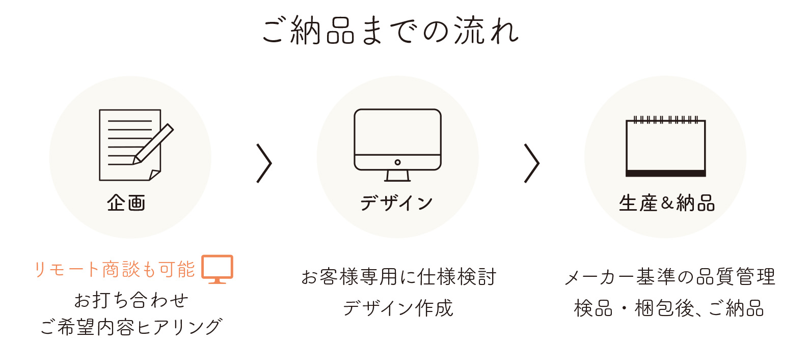 MD PAPER PRODUCTS®︎の『MD カレンダー』に企業やブランドのロゴをお名入れできます。セミカスタマイズなので短納期・小ロット(500冊〜)対応可能です。