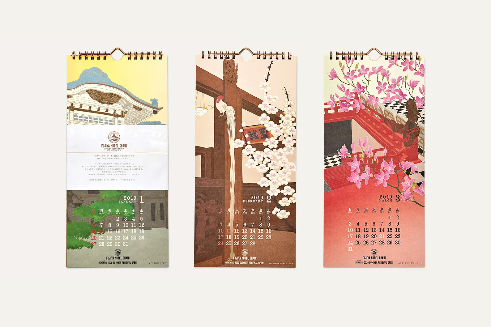 お部屋のインテリアやオフィス使いにも便利な壁掛けカレンダー。月ごとに雰囲気が変わり、一年間飽きずにお使いいただけます。海外のお客さまをもつグローバル企業や和のブランドなど、日本らしさを伝えるのに最適なカレンダーです。素材は、風合いのある和紙などに変更することもできます。
