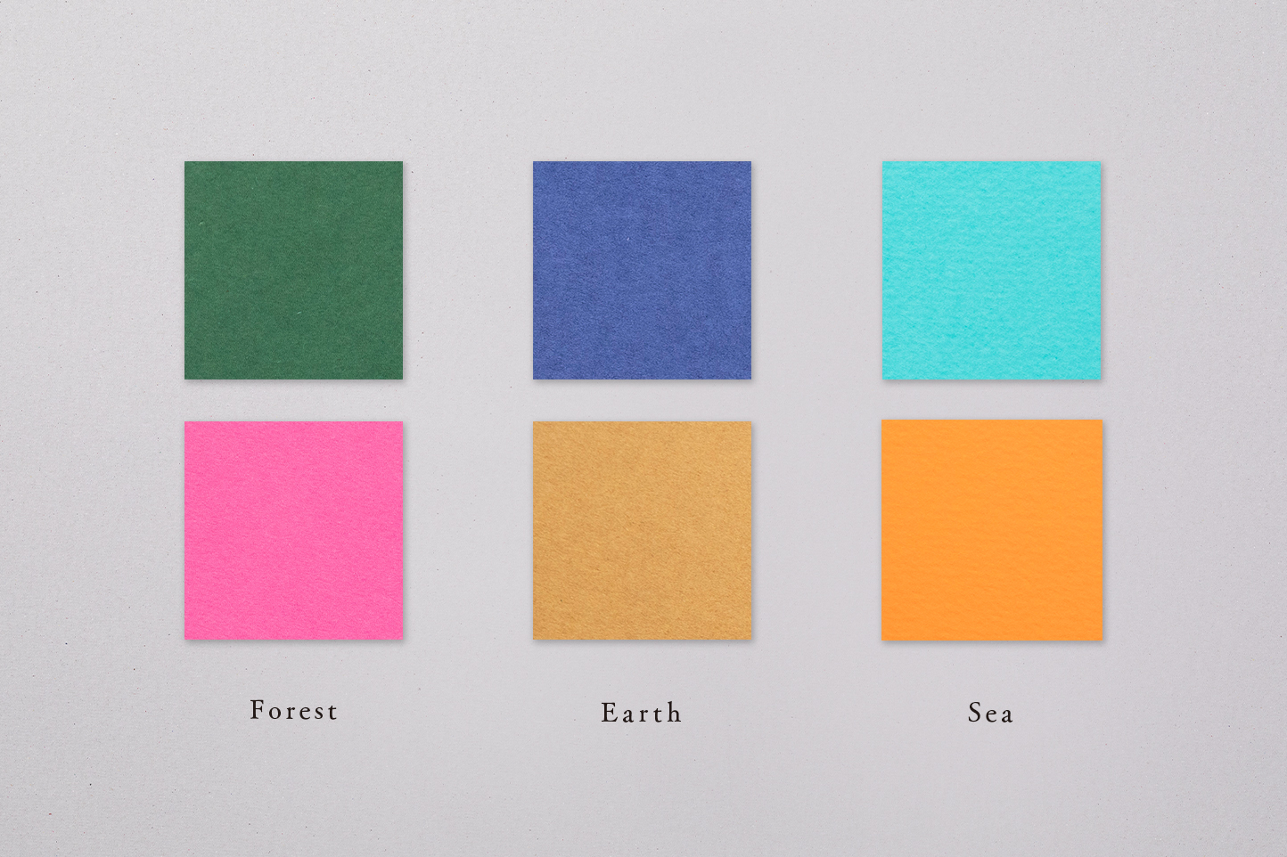 環境に優しい…というと、ベージュやグリーンなど、落ち着いたカラーリングをイメージしがちではないでしょうか。環境に配慮しながらも、従来のエコのイメージを覆す華やかな印象のグッズをデザインしました。紙そのものの色味や風合いを活かし、自然の力をイメージしたバイカラーで展開しています。