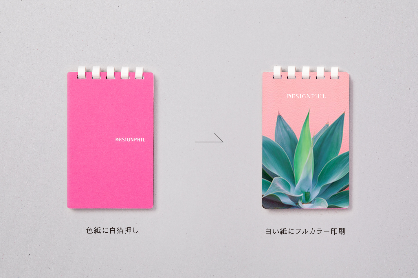 色紙に1色でデザインしているシリーズですが、白い紙への変更+フルカラー印刷も可能です。ロゴやキャラクター、写真ももちろん対応いたします。