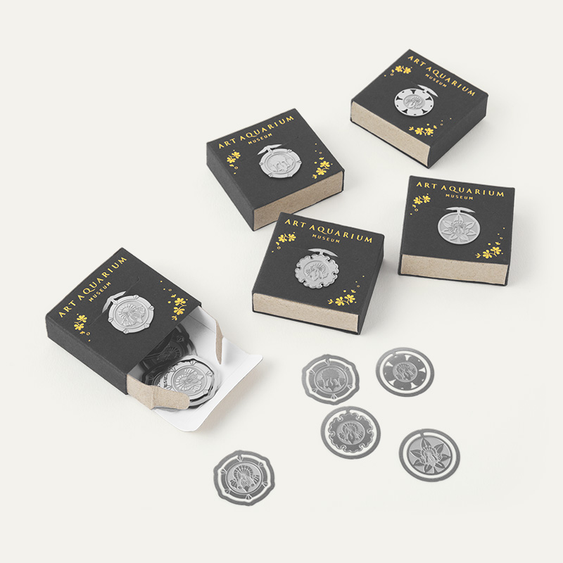 金魚に特化した「“生命の宿る美術館” アートアクアリウム」のショップで販売されたオリジナルグッズ。ターゲットの若いカップルや外国人を意識し、華やかな和の雰囲気を取り入れ、雅なデザインにプロデュースしました。