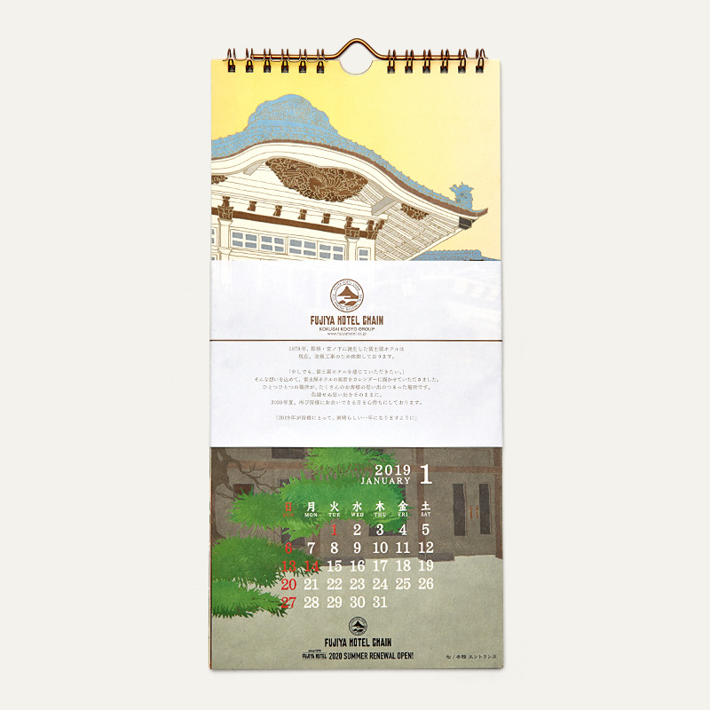 神奈川県箱根町の宮ノ下温泉にある老舗ホテル、富士屋ホテル様。毎年ご好評いただいているカレンダーを中心に、ご宿泊のお客様に向け、お土産品として販売するオリジナルアイテムを製作させていただいております。