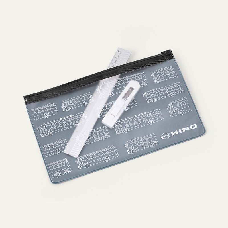 同社バス部様向けに、年2回行われるバスイベントでのノベルティグッズとして、ジッパーケース、クリアフォルダー、付箋を制作いたしました。