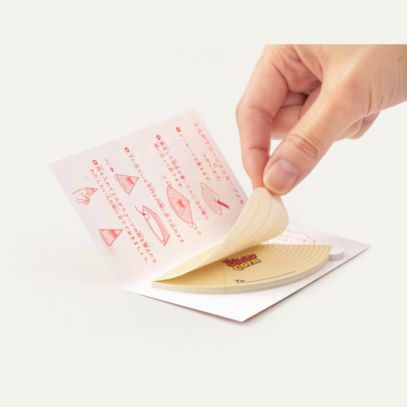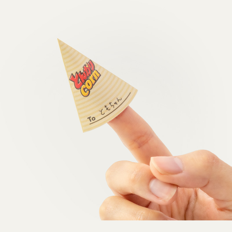 リモート工場見学にご参加の小学生向けノベルティとして、「とんがりコーン」をミニチュアにしたようなメモを製作しました。