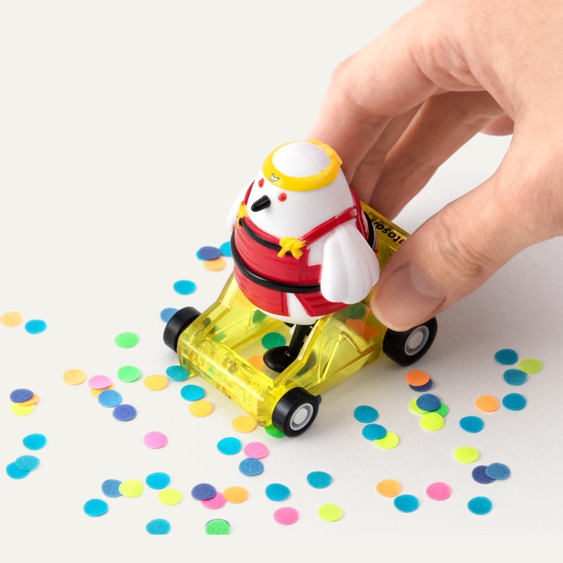 後ろ姿も細かくデザイン。背中のゼッケン「810」「36」は…「はと」「サブロー」!